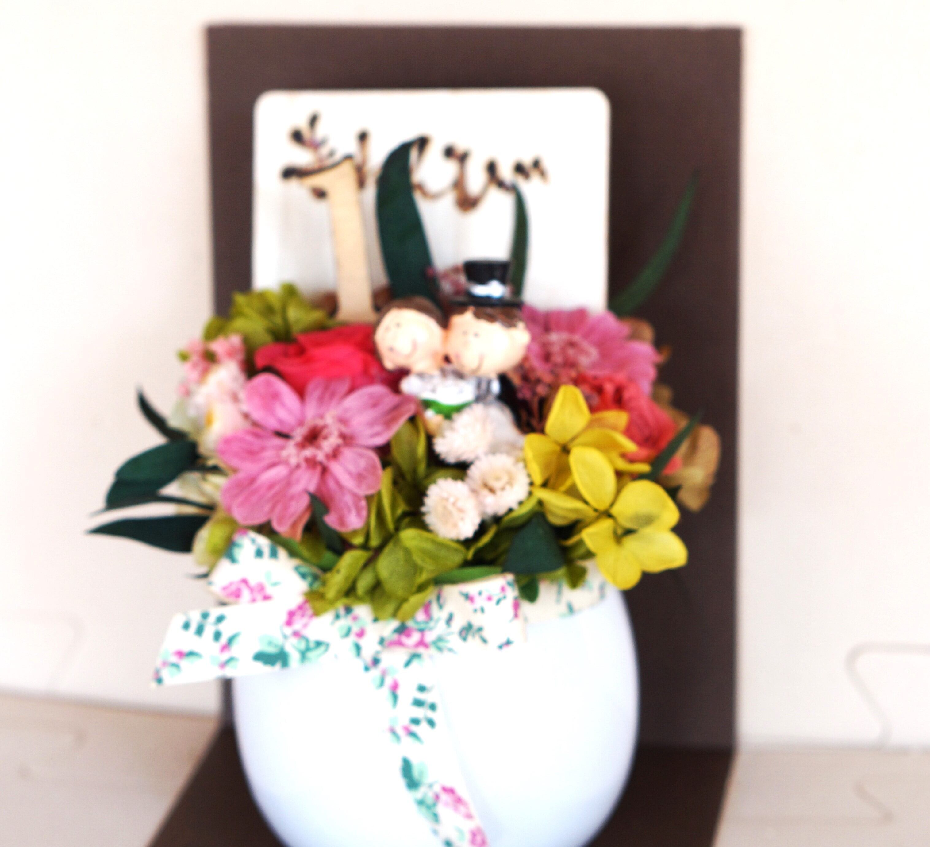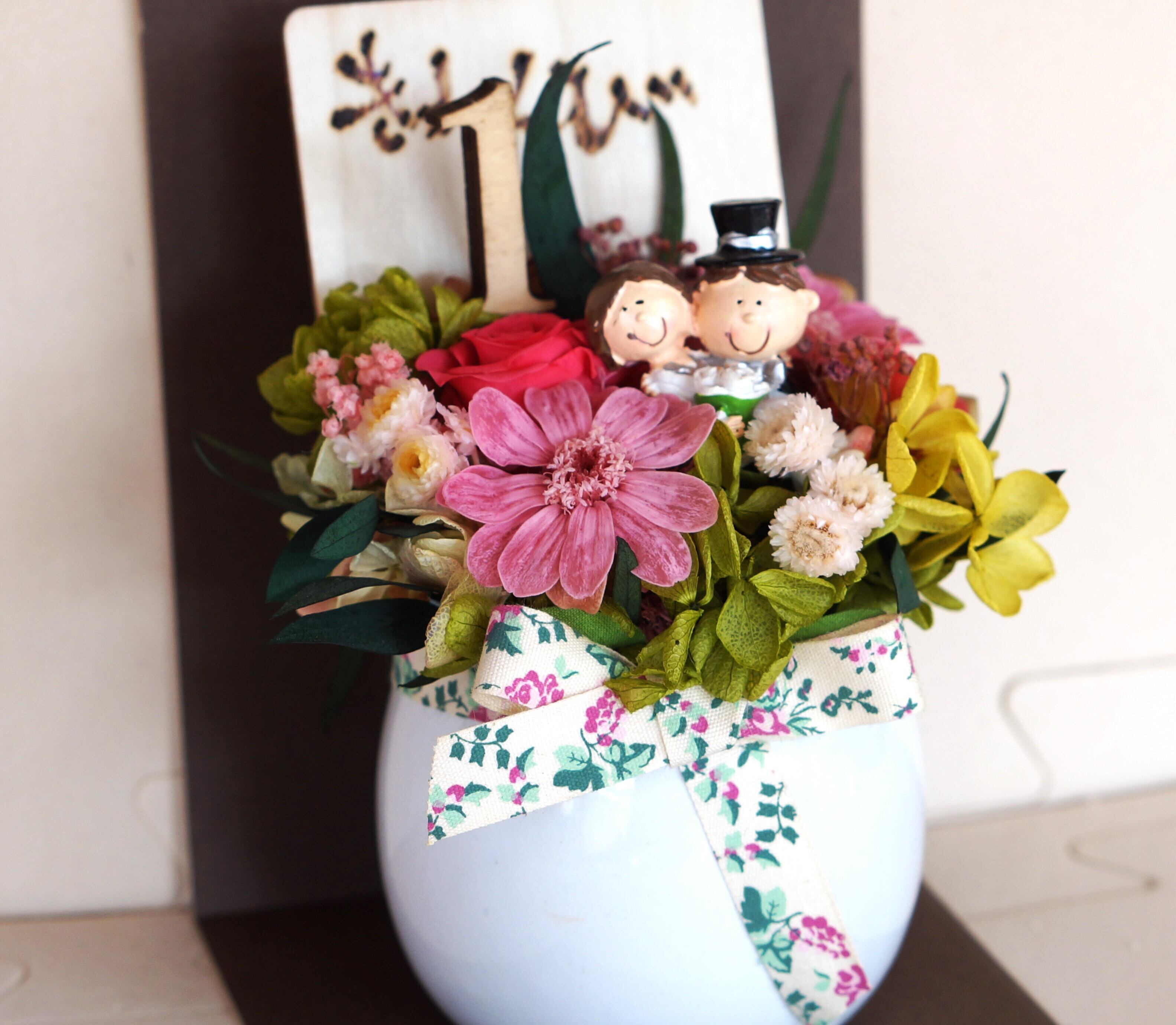 愛する人と過ごした1年を記念する、美しいプリザーブドフラワー。