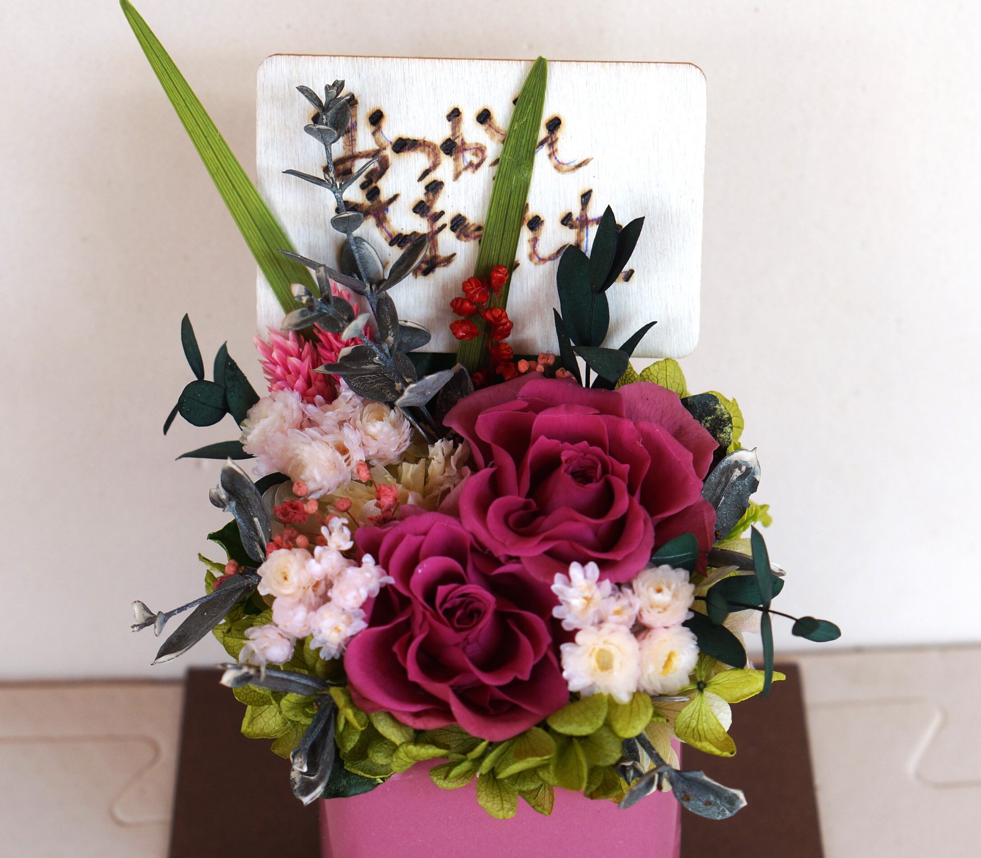 プリザーブドフラワー・退職祝におすすめ・メッセージを添えると気持ちが伝わります。
