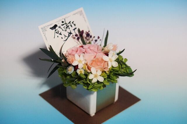 退職祝い・メッセージ付き、誕生日祝いに贈るプリザーブドフラワー